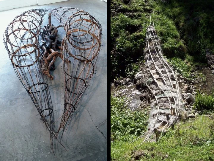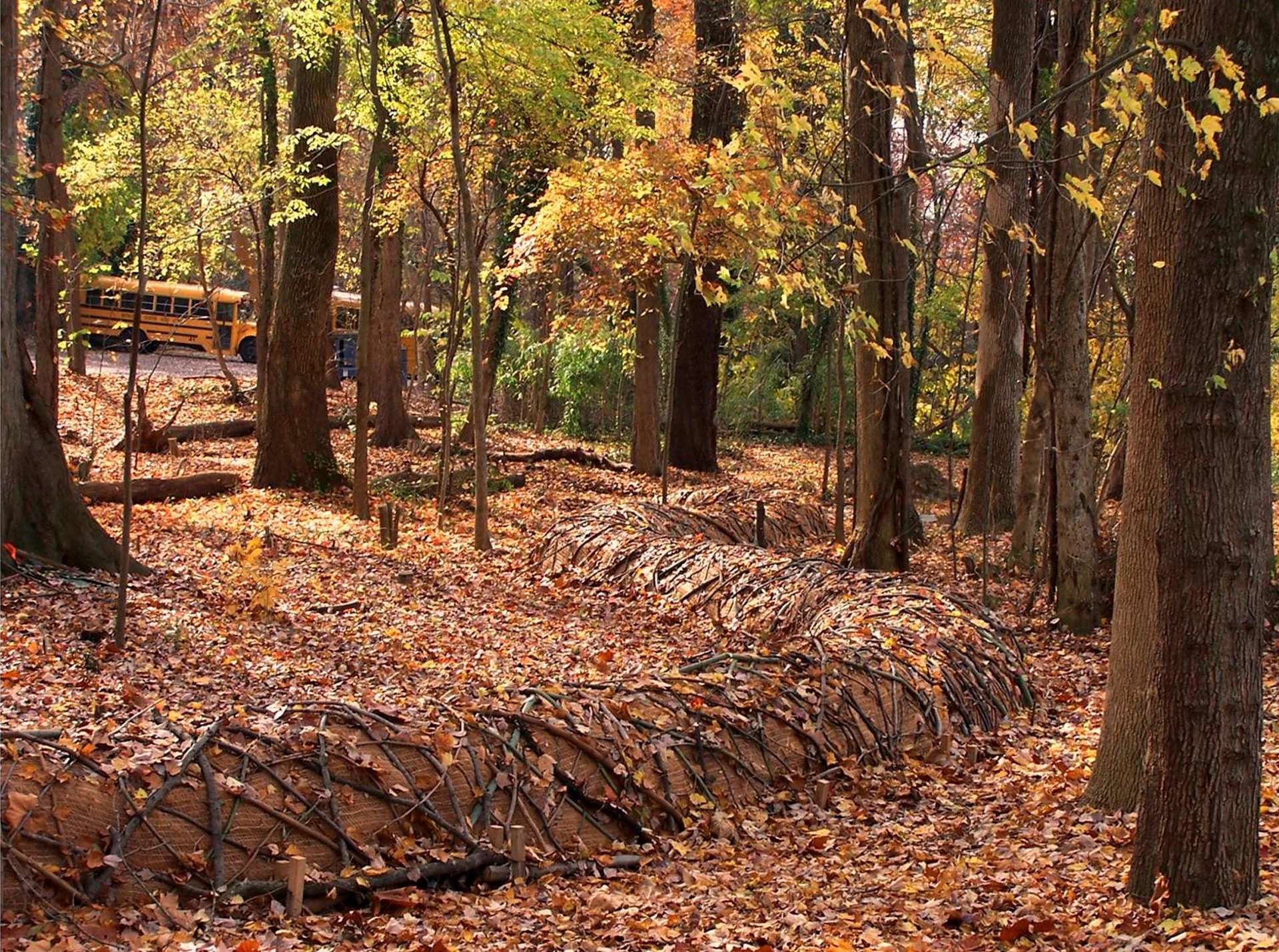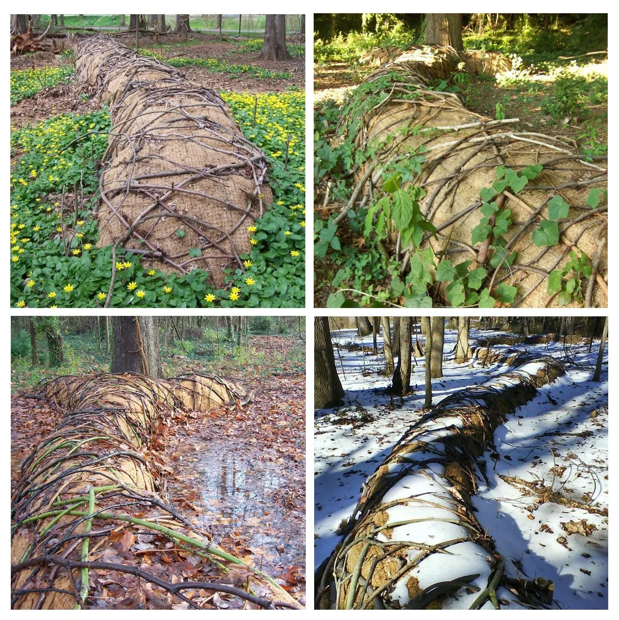 One of several flood plain sculptures designed to mitigate storm water run-off from urban development and regenerate native habitats along the largest flowing creek in Charlotte, North Carolina.
